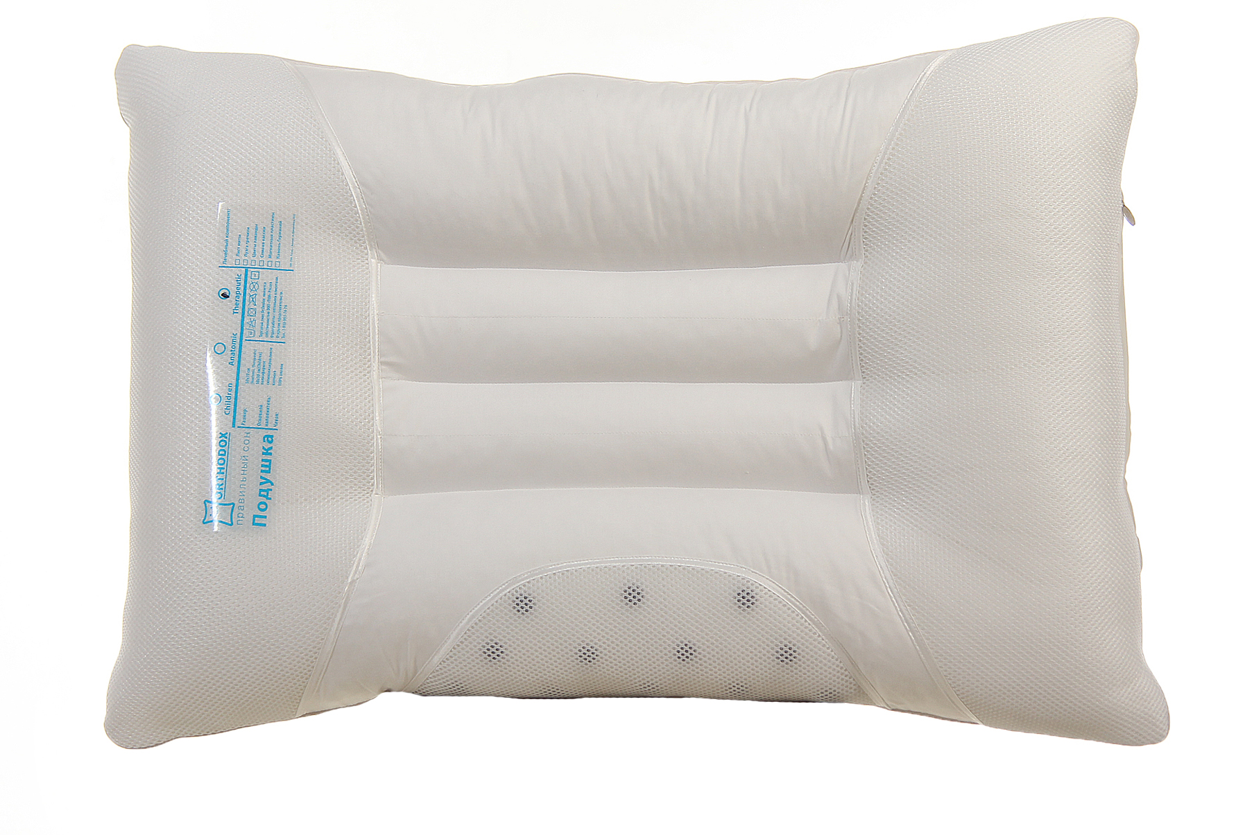 ГЛУБОКИЙ ОЗДОРОВИТЕЛЬНЫЙ СОН. 6 КАМЕРНАЯ ПОДУШКА. МАГНИТНЫЕ ПЛАСТИНЫ РАСПОЛОЖЕНЫ ТОЧНО В ЗОНЕ ПОДШЕЙНОГО ВАЛИКА. ТЕРИЛЕНОВАЯ СЕТКА ОТВОДИТ ИЗЛИШНЮЮ ВАЛГУ